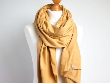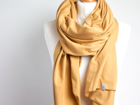 Duży szal z bawełny w kolorze miodowym. Szal jest miły i miękki w dotyku, bardzo ładnie się układa. Szal uszyty został wysokogatunkowej bawełny. Brzegi zostały obszyte maszynowo, estetyczne wykończenie. Dodatkowo opatrzony jest naszą firmową metką.