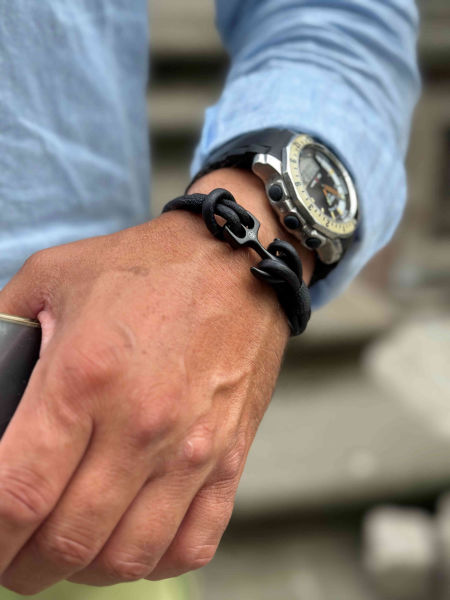 Zapięcie w formie kotwicy, co nadaje marynistyczny charakter bransolety.