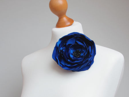 Elegancka broszka, kwiatek ręcznie wykonana z satyny, dodatkowo ozdobiona małymi koralikami. Bardzo efektowny dodatek do marynarki, komina, sukienki, itd. Kwiatek posiada zapięcie broszkowe.