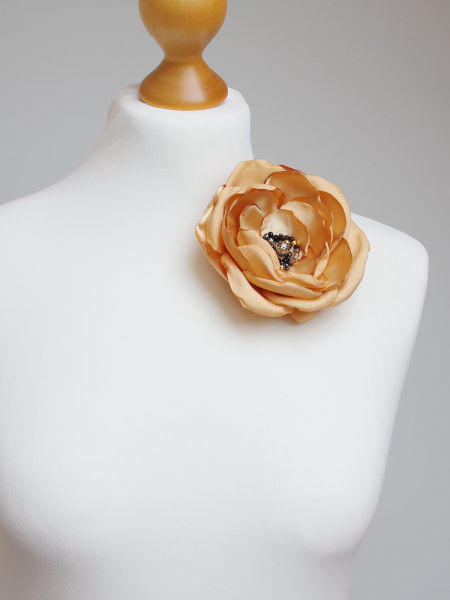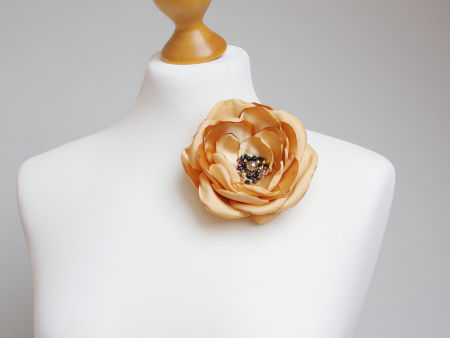 Elegancka broszka, kwiatek ręcznie wykonana z satyny, dodatkowo ozdobiona małymi koralikami. Bardzo efektowny dodatek do marynarki, komina, sukienki, itd. Kwiatek posiada zapięcie broszkowe.