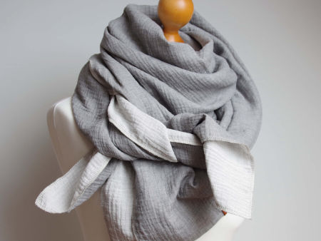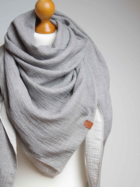 Miękka chusta z muślinu w kolorze szarego melanżu. Wewnętrzna strona jasny szary. Bawełniana chusta damska jest idealna na wiosnę i jesień, doskonale sprawdzi się jako miękki otulacz na szyję.