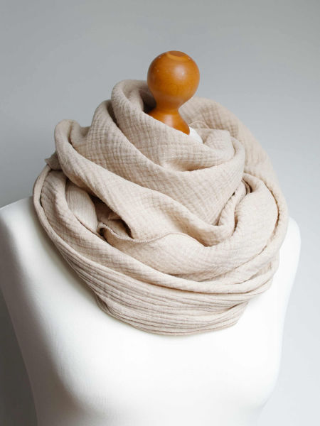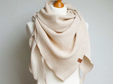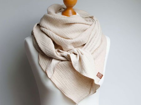 Chusta uszyta została z delikatnego muślinu dwuwarstwowego, bawełnianego.
