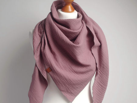 Miękka chusta z muślinu w kolorze wrzosowym jagodowa. Trójkątna chusta damska jest idealna na wiosnę i jesień, doskonale sprawdzi się jako miękki otulacz na szyję.
