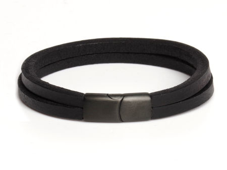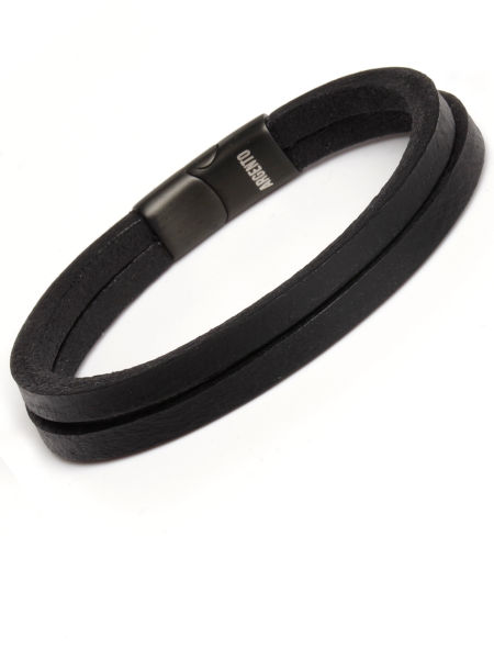 Klasyczna bransoleta męska wykonana z rzemienia w kolorze czarnym.