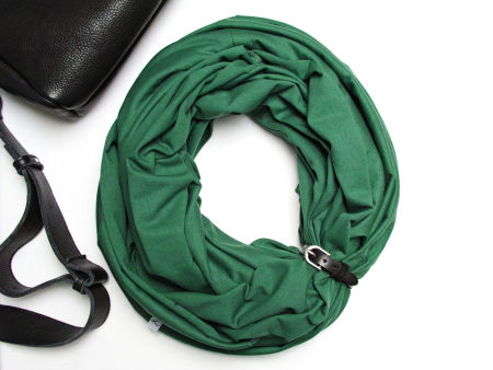 Komin dzianinowy w kolorze zielonym, uszyty z cienkiej dzianiny bawełnianej. Komin nadaje się na okres wiosenny i jesienny. Pasuje praktycznie do wszystkiego. Ładnie się drapuje i układa. Można go nosić dwukrotnie owinięty wokół szyi.