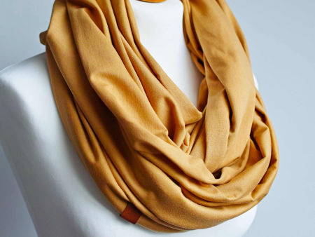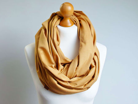 Obszerny komin dzianinowy w kolorze miodowym, uszyty z cienkiej dzianiny bawełnianej. Komin nadaje się na okres wiosenny i jesienny. Pasuje praktycznie do wszystkiego. Ładnie się drapuje i układa. Można go nosić dwukrotnie owinięty wokół szyi - wtedy jest luźny i obszerny.