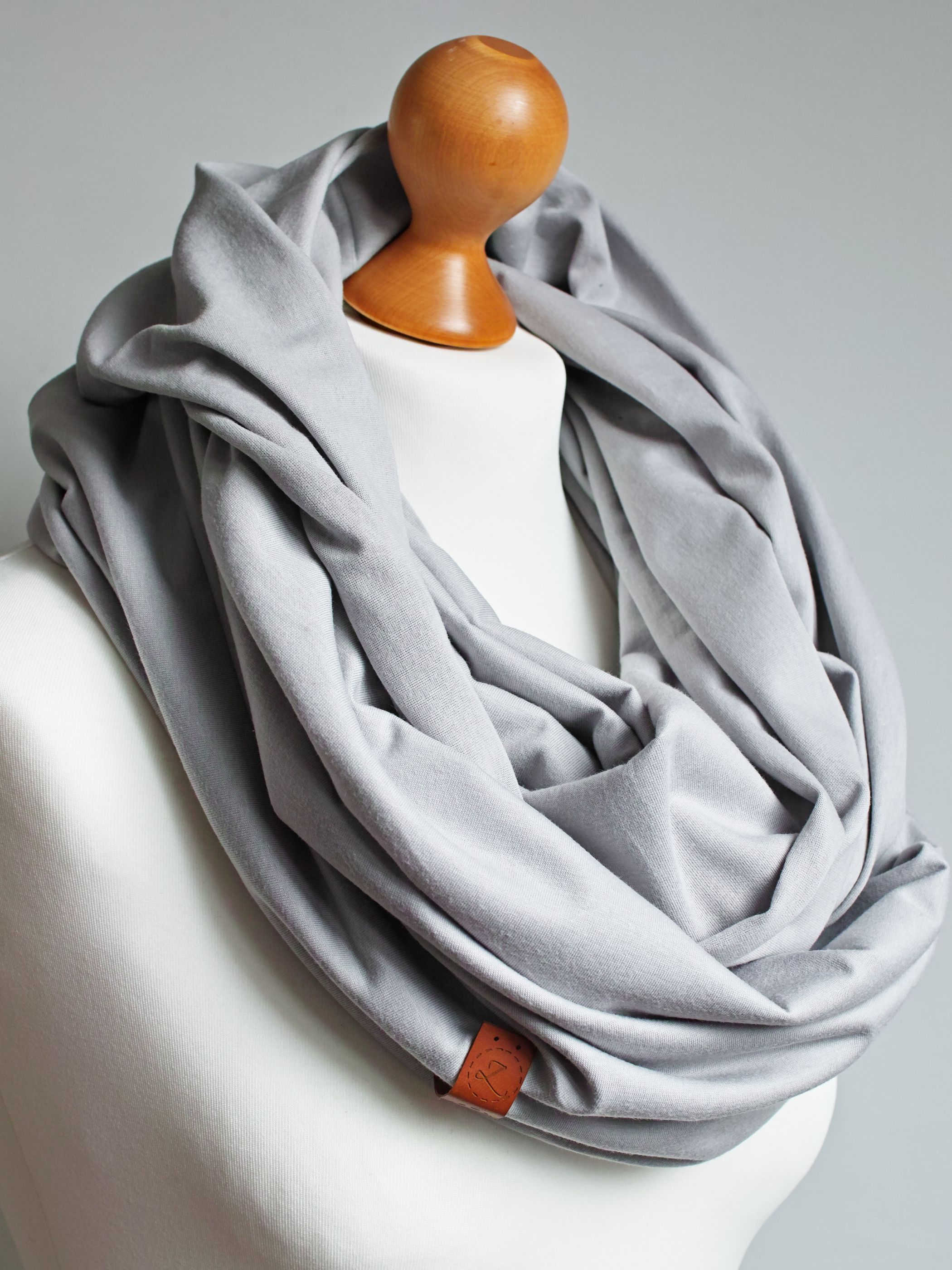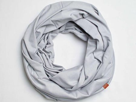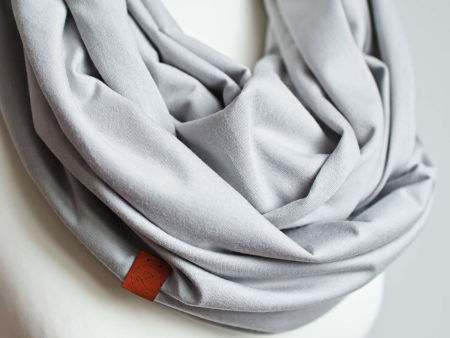 Obszerny komin dzianinowy w kolorze popielatym, uszyty z cienkiej dzianiny bawełnianej. Komin nadaje się na okres wiosenny i jesienny. Pasuje praktycznie do wszystkiego. Ładnie się drapuje i układa. Można go nosić dwukrotnie owinięty wokół szyi - wtedy jest luźny i obszerny.