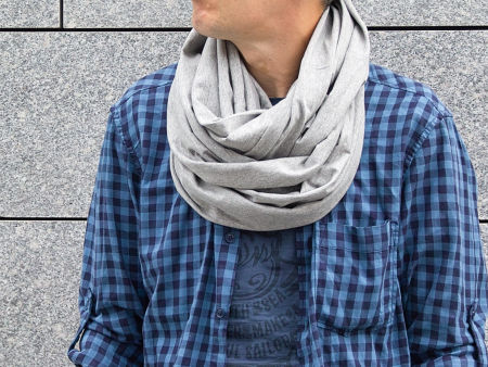 Komin bawełniany męski w kolorze szary, uszyty z cienkiej dzianiny bawełnianej.
