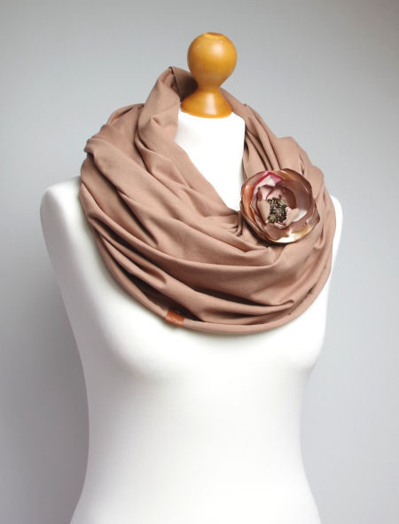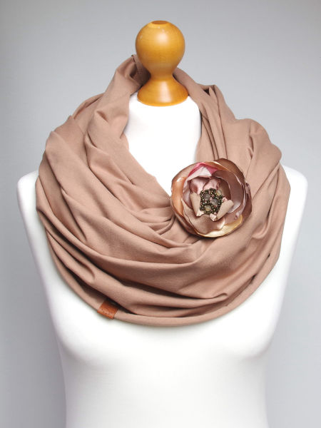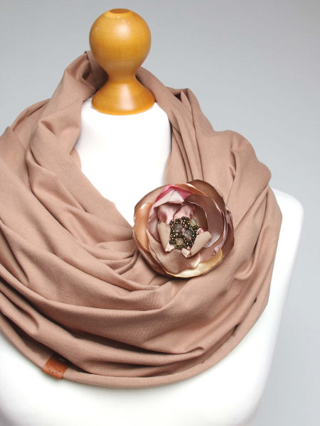 Dodatkową ozdobą jest broszka w formie kwiatu, która dodaje uroku oraz daje wiele możliwości upinania komina. Broszkę można nosić osobno, do innego szala.