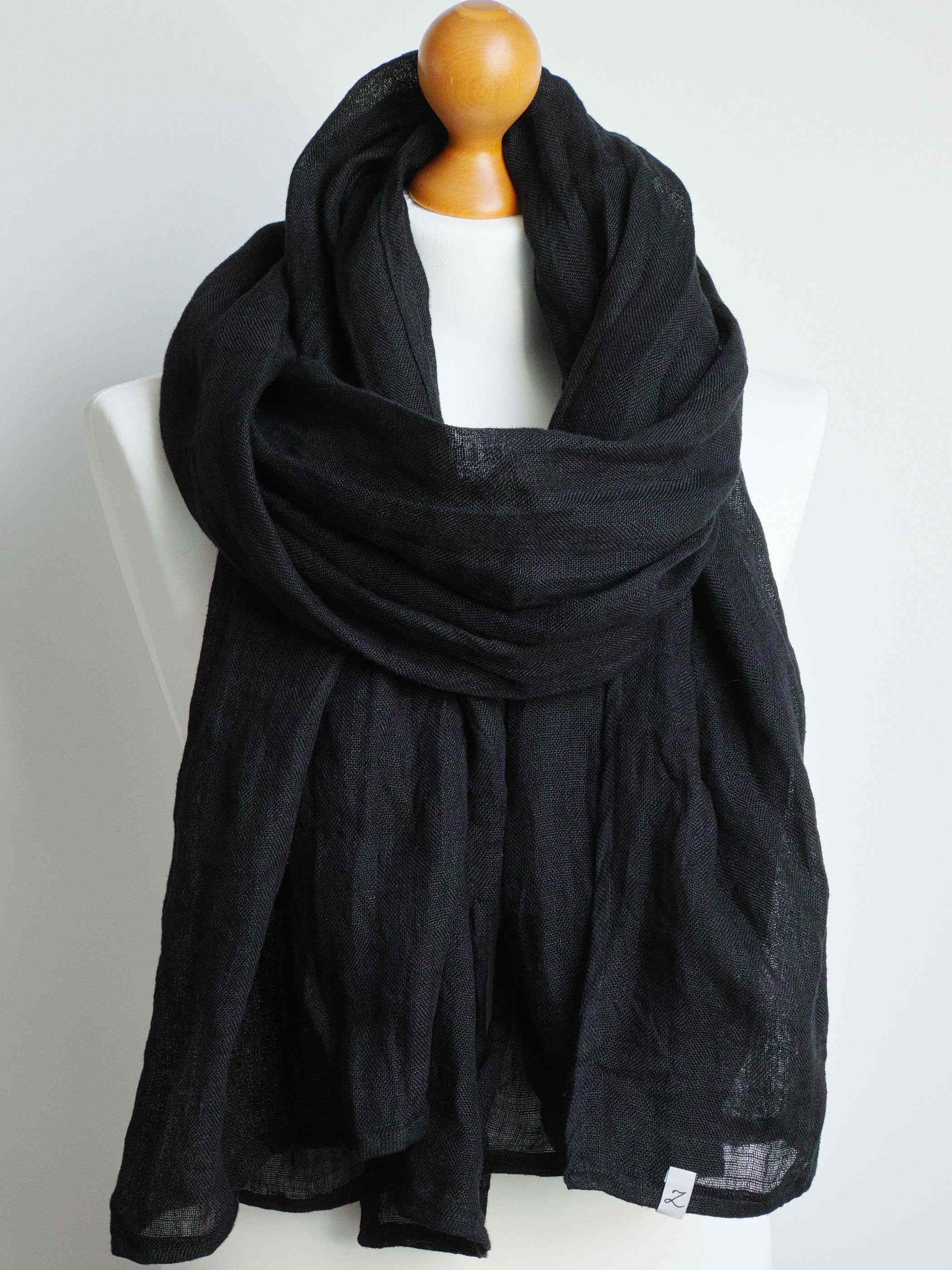 Duży szal z naturalnego, delikatnego lnu. Szal jest miły i miękki w dotyku, bardzo ładnie się układa, jest puszysty. Brzegi zostały estetycznie wykończone, przeszyte maszynowo.