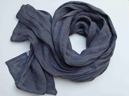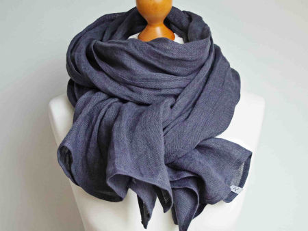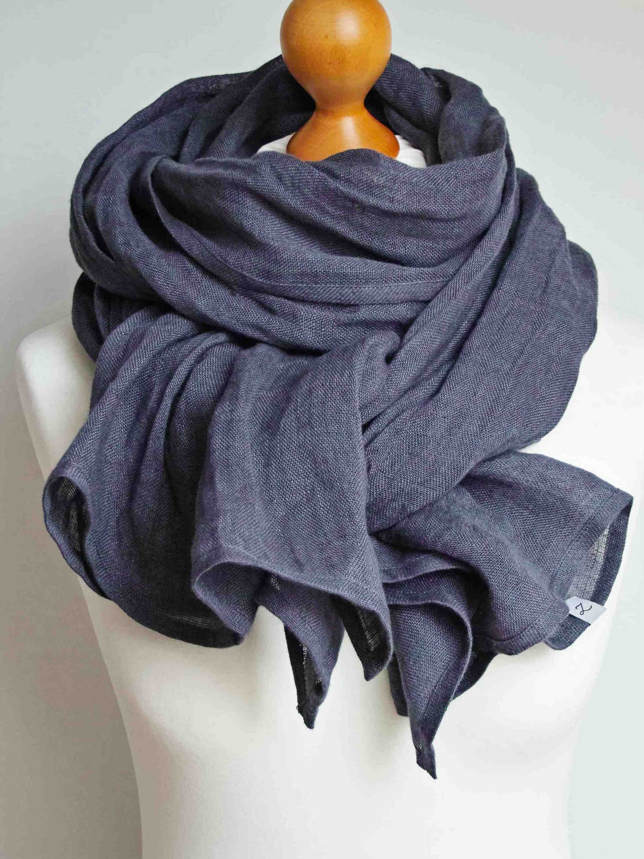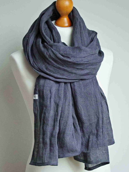 Duży szal z naturalnego, delikatnego lnu. Szal jest miły i miękki w dotyku, bardzo ładnie się układa, jest puszysty. Brzegi zostały estetycznie wykończone, przeszyte maszynowo.