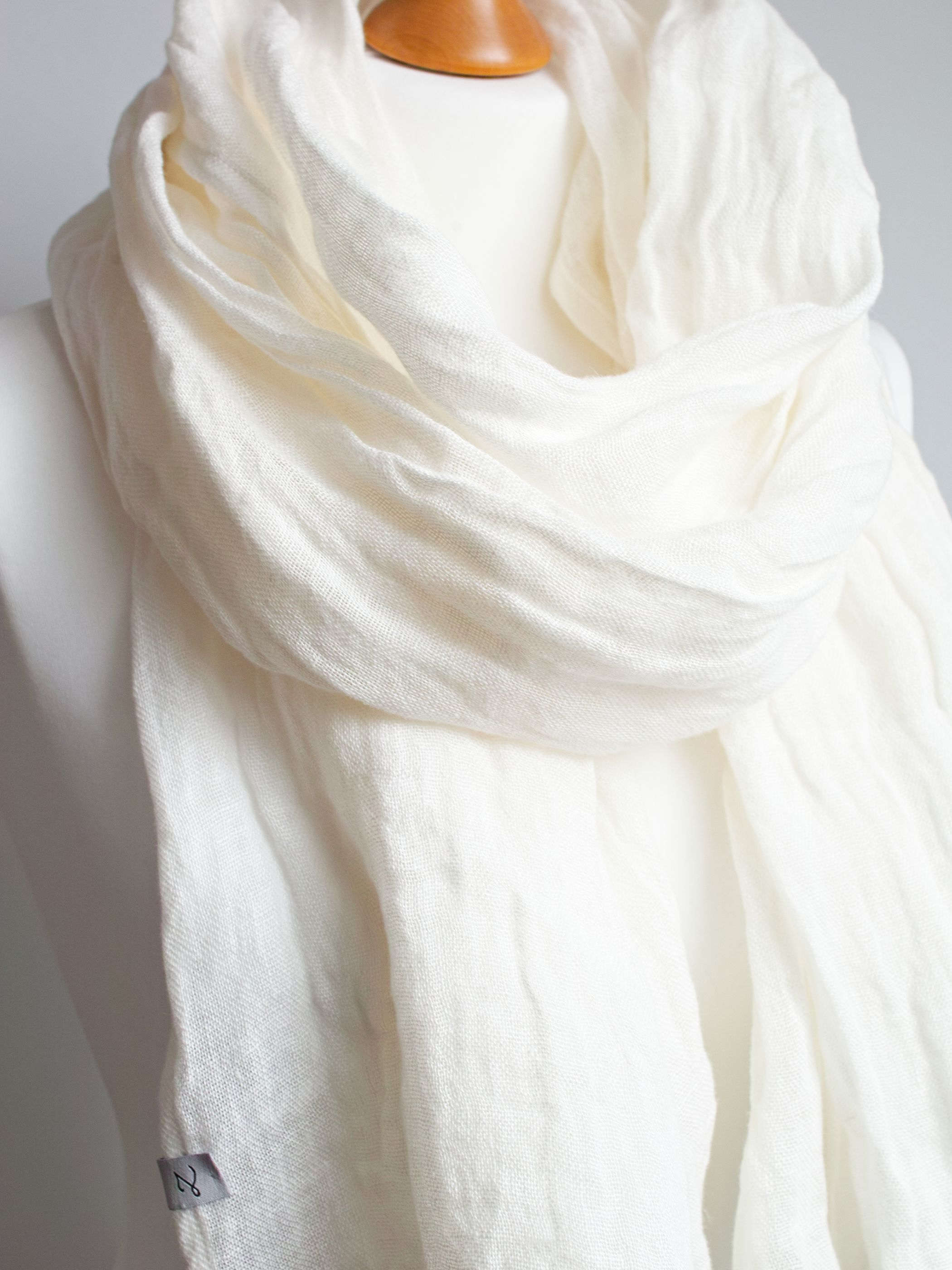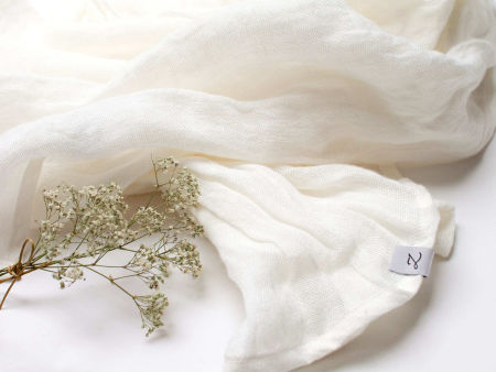 Duży szal z naturalnego, delikatnego lnu. Szal jest miły i miękki w dotyku, bardzo ładnie się układa, jest puszysty. Brzegi zostały estetycznie wykończone, przeszyte maszynowo.