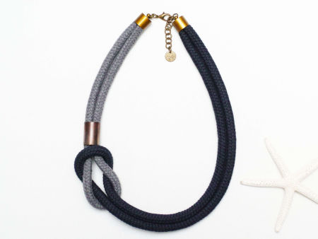 Naszyjnik wykonany został z wysokogatunkowej liny bawełnianej i przekładek miedzianych specjalnie postarzanych i pociemnianych. Całość tworzy bardzo efektowny zestaw, prosty a jednocześnie przyciągający uwagę.