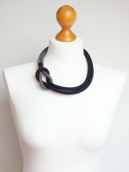 Modny, minimalistyczny naszyjnik z grubej liny bawełnianej. Ten bardzo prosty, a zarazem efektowny naszyjnik pięknie prezentuje się do każdej bluzki, t-shirtu. Jego uniwersalność to atut, który doceni każda kobieta.