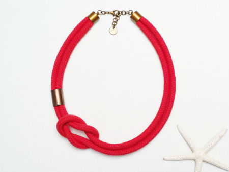 Naszyjnik damski z liny bawełnianej - czerwony