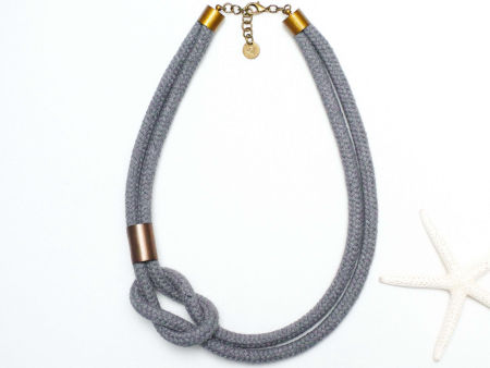 Naszyjnik wykonany został z wysokogatunkowej liny bawełnianej i przekładek miedzianych specjalnie postarzanych i pociemnianych. Całość tworzy bardzo efektowny zestaw, prosty a jednocześnie przyciągający uwagę.