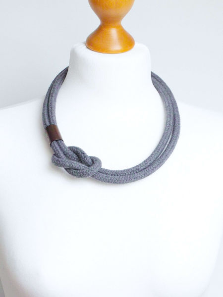 Modny, minimalistyczny naszyjnik z grubej liny bawełnianej. Ten bardzo prosty, a zarazem efektowny naszyjnik pięknie prezentuje się do każdej bluzki, t-shirtu. Jego uniwersalność to atut, który doceni każda kobieta.