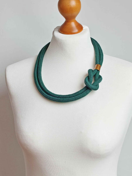 Naszyjnik damski z liny bawełnianej - zielony