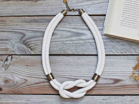 Modny, minimalistyczny naszyjnik z grubej liny bawełnianej. Ten bardzo prosty, a zarazem efektowny naszyjnik pięknie prezentuje się do każdej bluzki, t-shirtu. Jego uniwersalność to atut, który doceni każda kobieta.