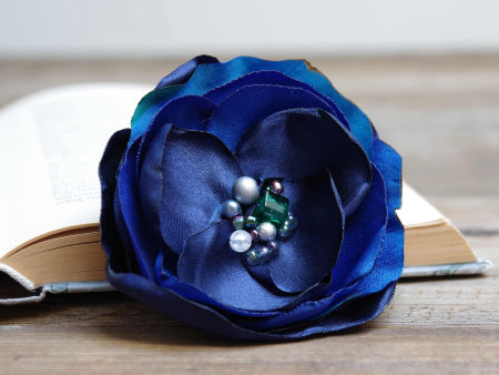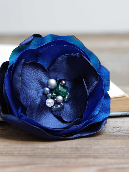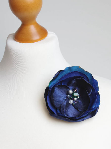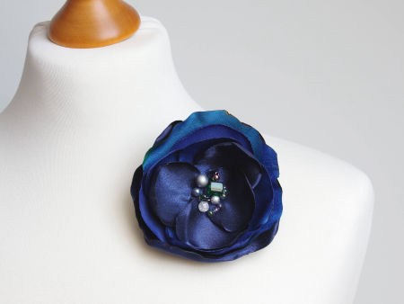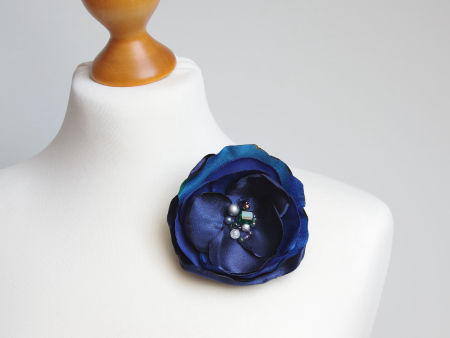Elegancka broszka kwiatek ręcznie wykonana z satyny, dodatkowo ozdobiona małymi koralikami. Bardzo efektowny dodatek do marynarki, sukienki, itd. Kwiatek posiada zapięcie broszkowe.