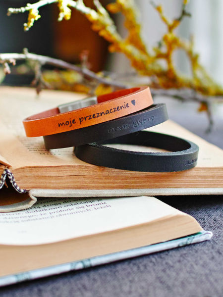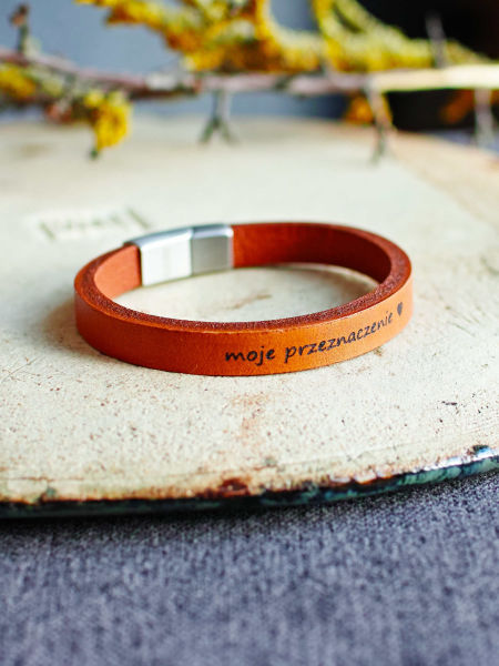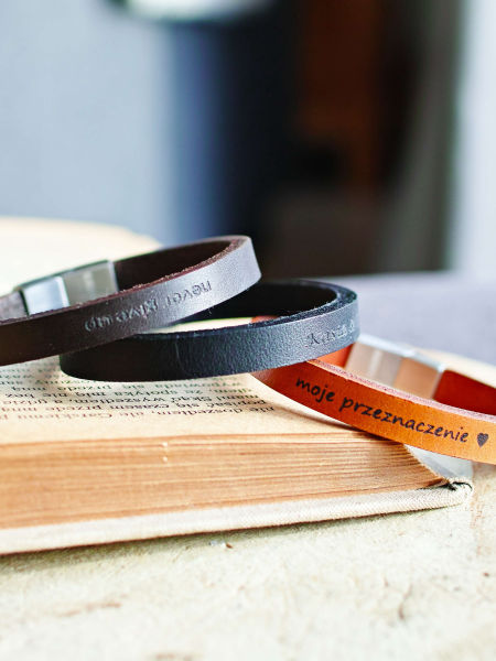 Personalizowana bransoletka damska wykonane ze skóry naturalnej z zapięciem ze stali szlachetnej. Bransoletka z własną dedykacją to elegancki dodatek, który łączy styl z indywidualnością. To Idealny pomysł na prezent. Bransoletkę można spersonalizować imieniem, datą lub inicjałami. Maksymalnie 40 znaków.