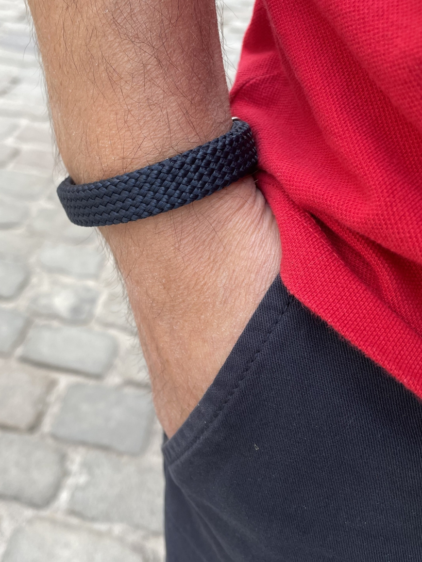 Modna bransoleta sportowa męska wykonana z usztywnionej liny wspinaczkowej.