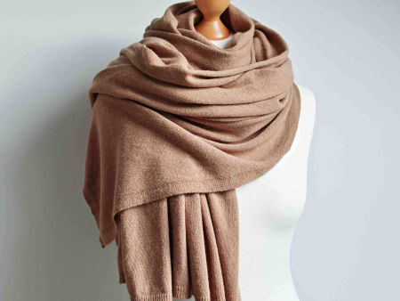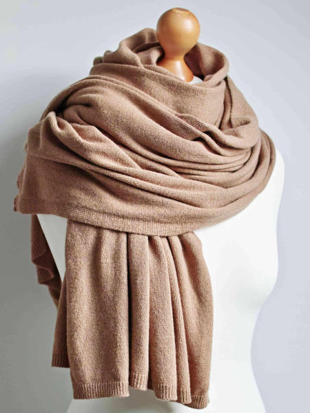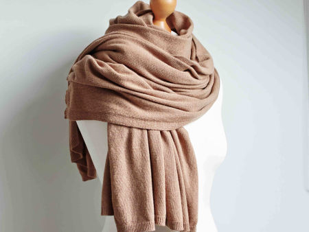 Duży, oversize'owy szal damski z dzianiny wełnianej, chusta w kolorze karmelowym. Szalik jest bardzo ciepły i duży, można się nim opatulić.