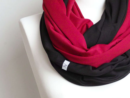 Komin dwukolorowy, uszyty z cienkiej dzianiny bawełnianej. Komin nadaje się na okres wiosenny, letni i jesienny. Pasuje praktycznie do wszystkiego. Komin / szal składa się z dwóch oddzielnych kominów, które można też nosić osobno.