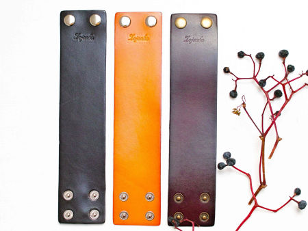 Zapinka, szeroka bransoleta skórzana w kolorze czarnym. Bransoletka może być zapinką do komina, szala ale i również ciekawą ozdobą na rękę. Przedmiotem jest jest bransoletka w wybranym kolorze.
