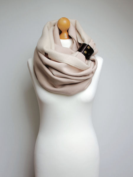 Damski KOMIN szal Dwukolorowy -  TUBA - zapinka bransoletka