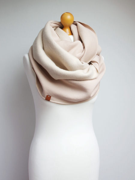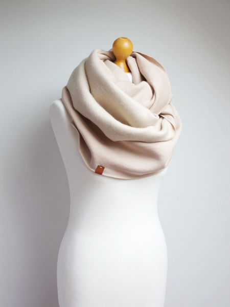 Gruby, zimowy komin dresowy w kolorze beżowym. Uszyty z miękkiej dresowej dzianiny, nadaje się na okres jesienno - zimowy. Komin jest przyjemny w dotyku, ładnie się układa, wewnętrzna strona jest drapana ( tzw. meszek).